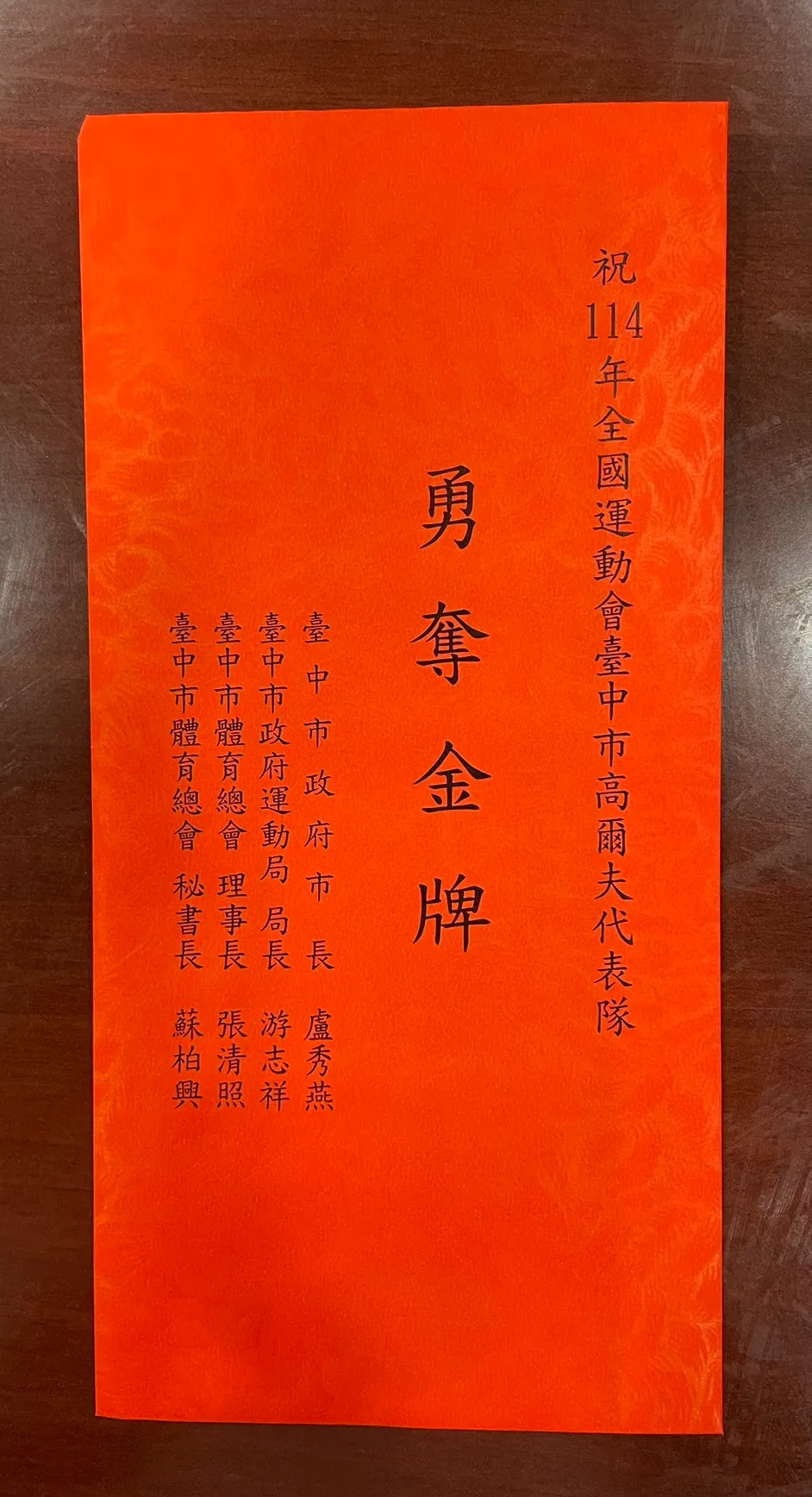 體總林海清專委致贈加菜金